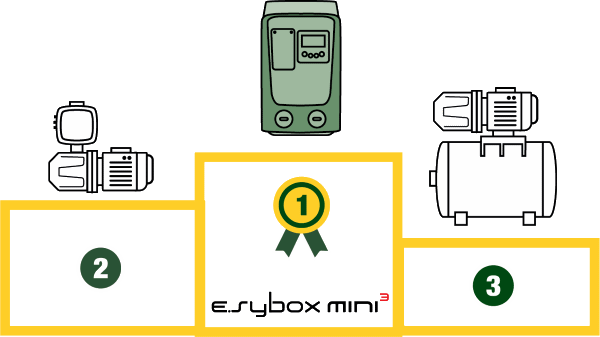 The E.sywall wall bracket allows wall installation, saving even more room. E.sybox Mini³ is a self-priming pump with a capability of 8 metres.